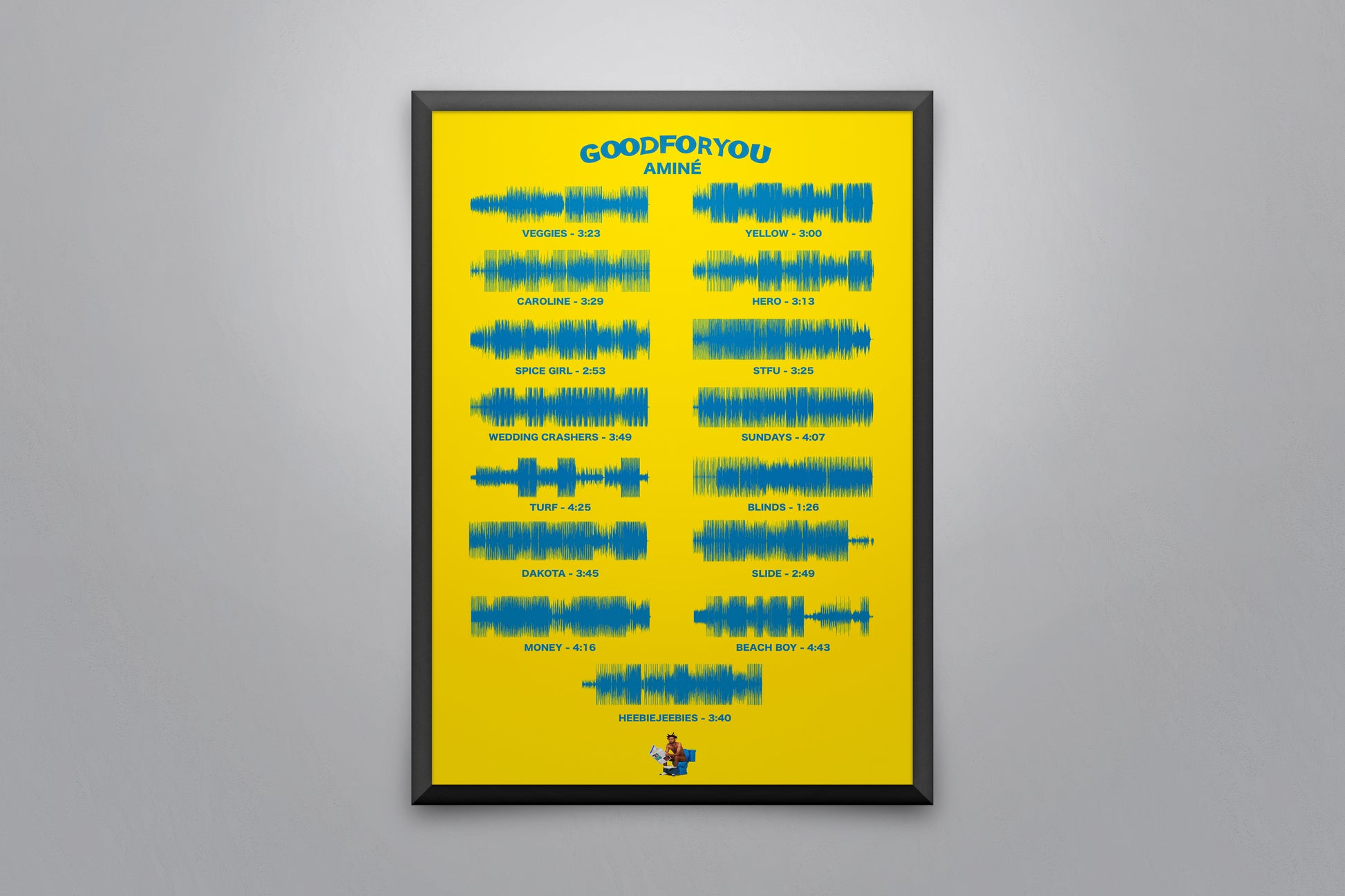 Soundwave poster displaying every song on the album 'Good For You' by Amine.