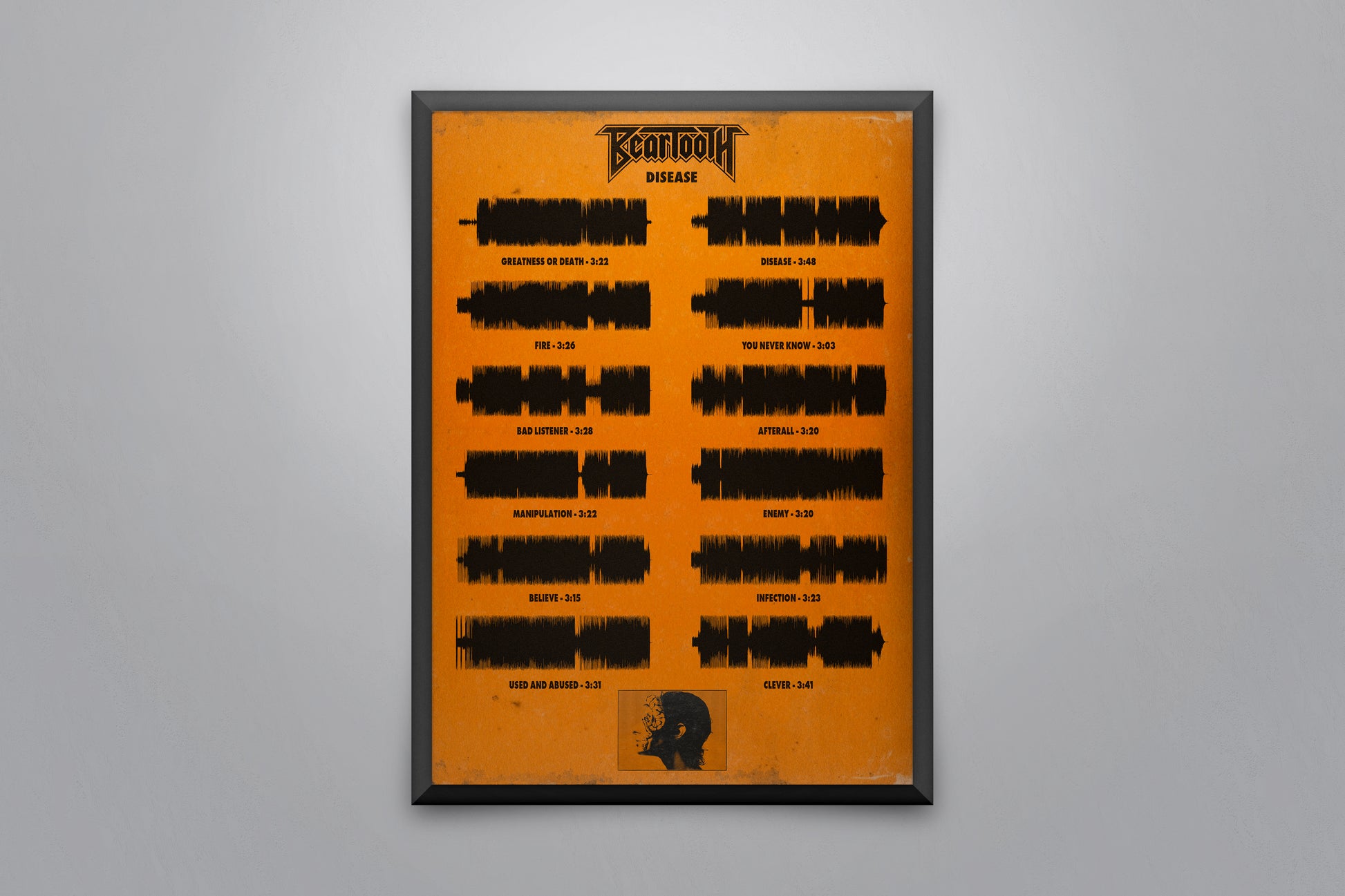 Soundwave poster displaying every song on the album 'Disease' by Beartooth.