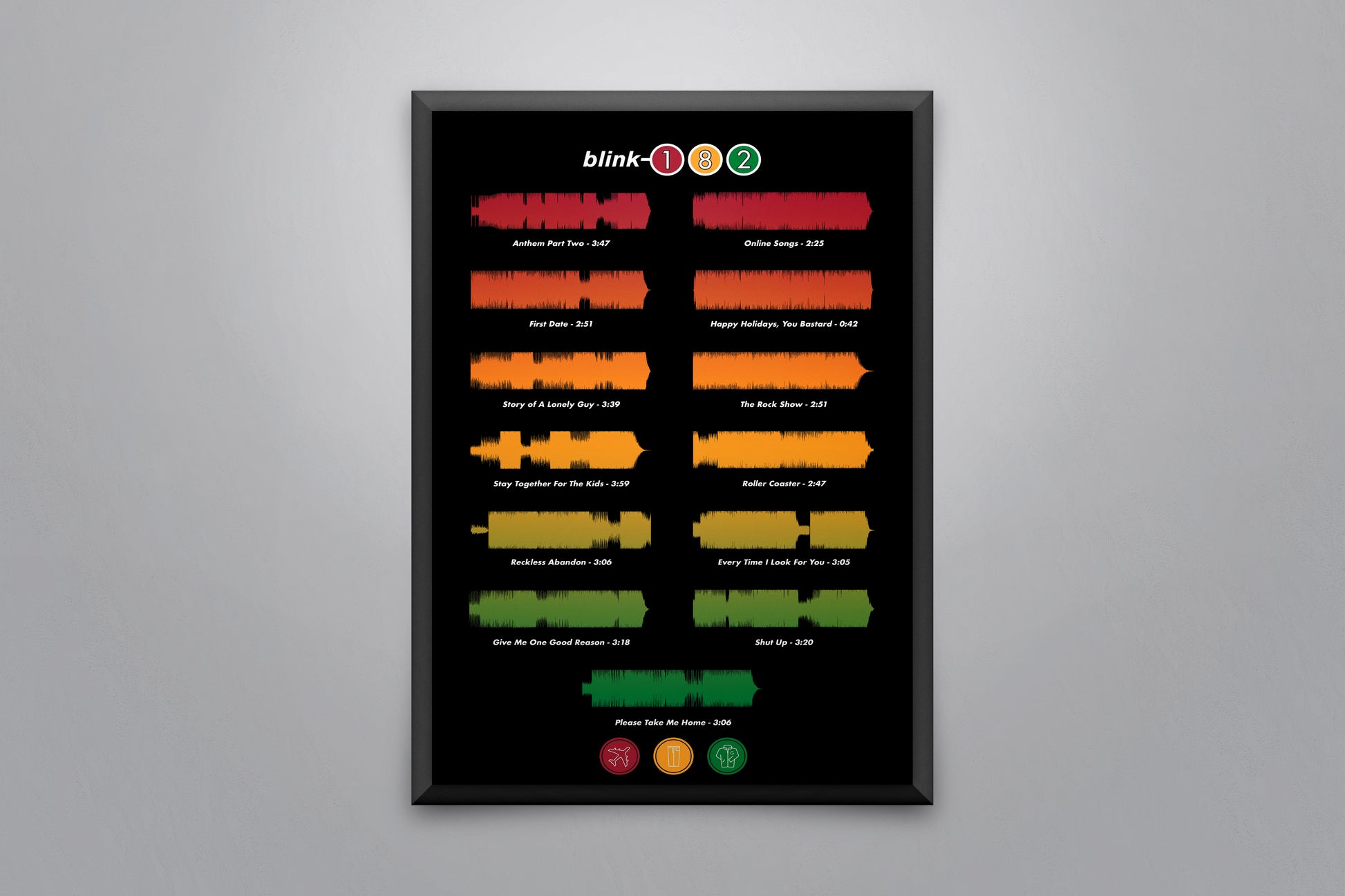 Soundwave poster displaying every song on the album 'Take Off Your Pants And Jacket' by blink-182.