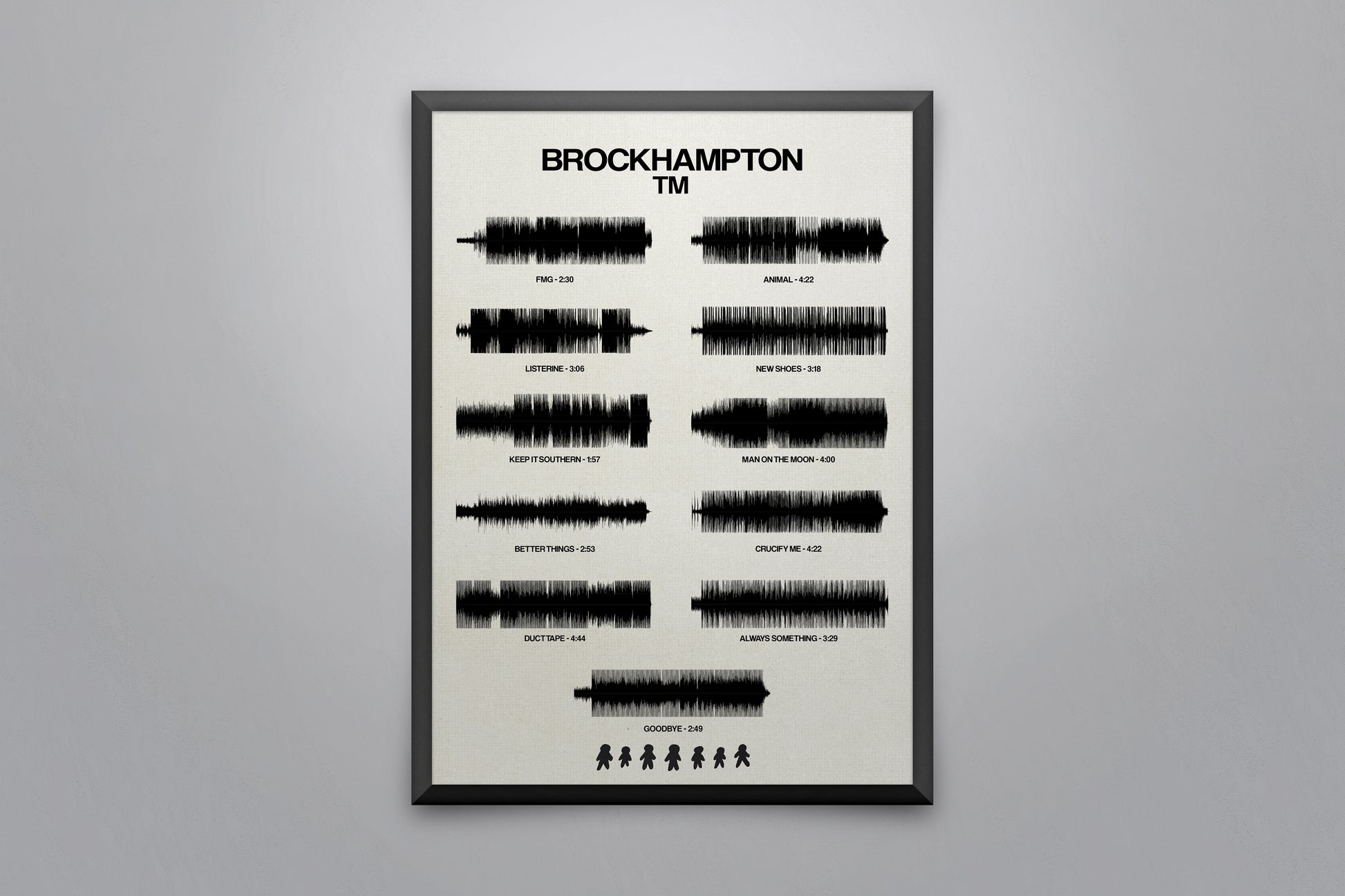Soundwave poster displaying every song on the album 'TM' by BROCKHAMPTON.
