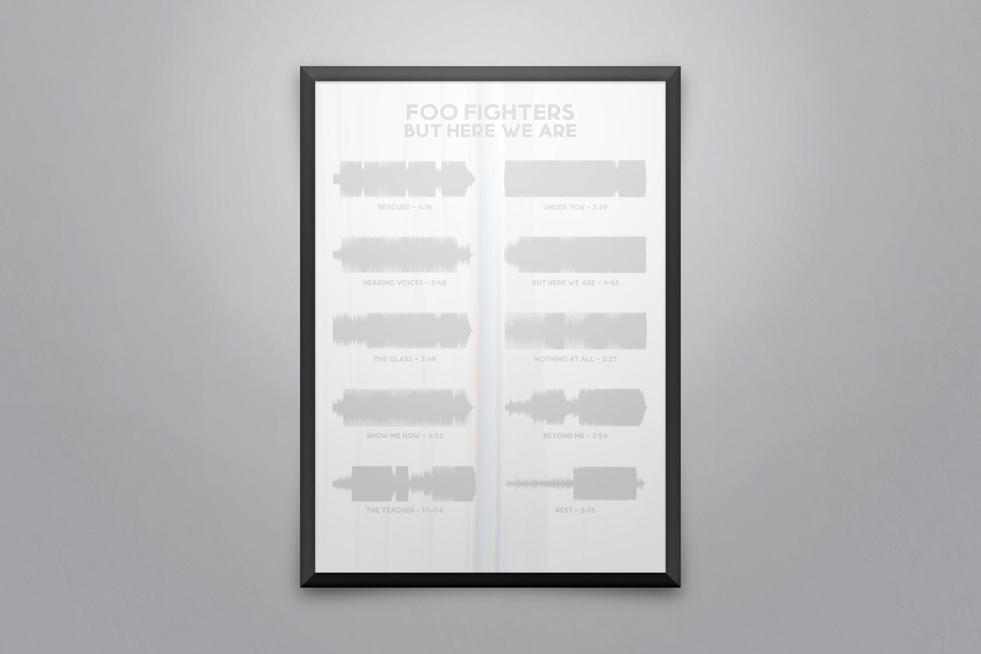 Soundwave poster displaying every song on the album 'But Here We Are' by Foo Fighters.