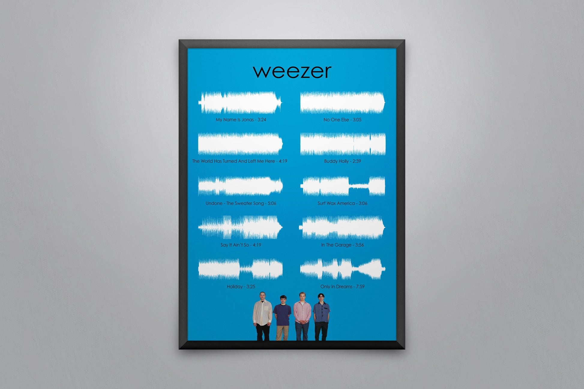 Soundwave poster displaying every song on the album 'Weezer (Blue Album)' by Weezer.