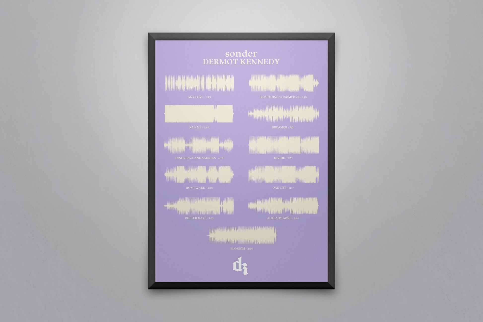 Soundwave poster displaying every song on the album 'Sonder' by Dermot Kennedy.