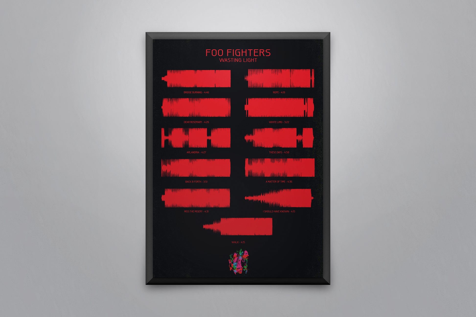 Soundwave poster displaying every song on the album 'Wasting Light' by Foo Fighters.