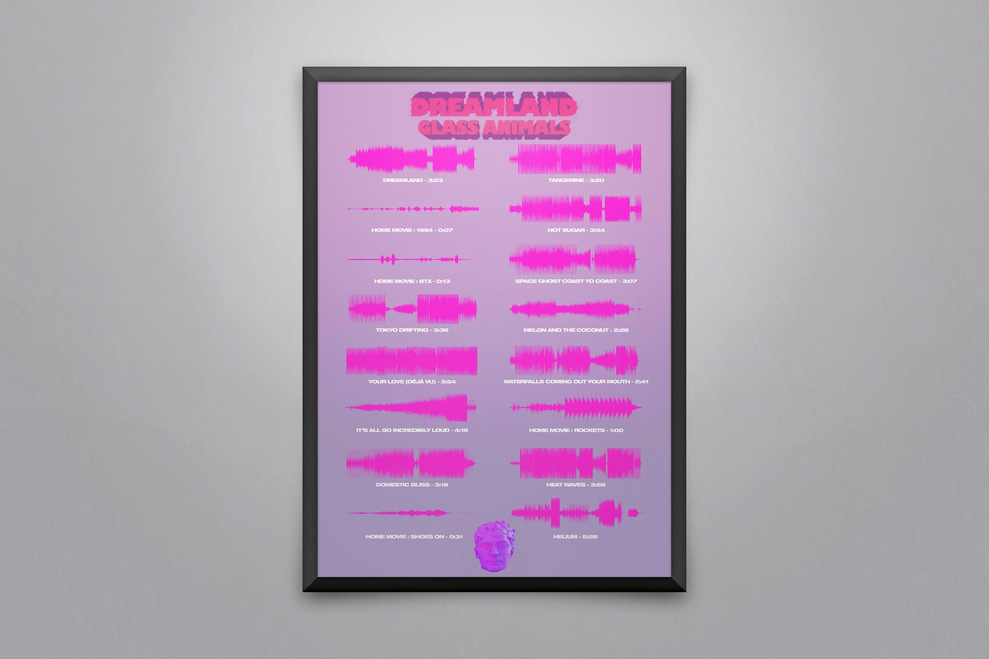 Soundwave poster displaying every song on the album 'Dreamland' by Glass Animals.
