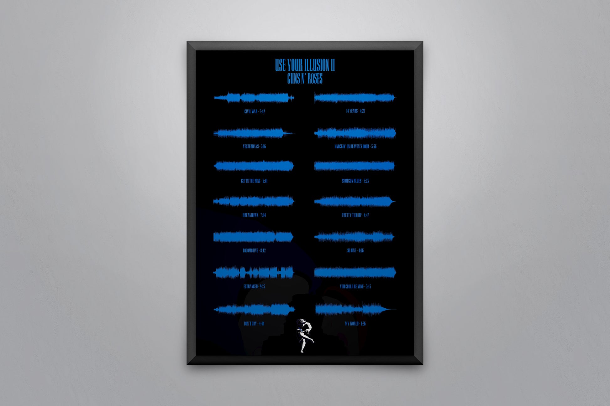 Soundwave poster displaying every song on the album 'Use Your Illusion II' by Guns N' Roses.