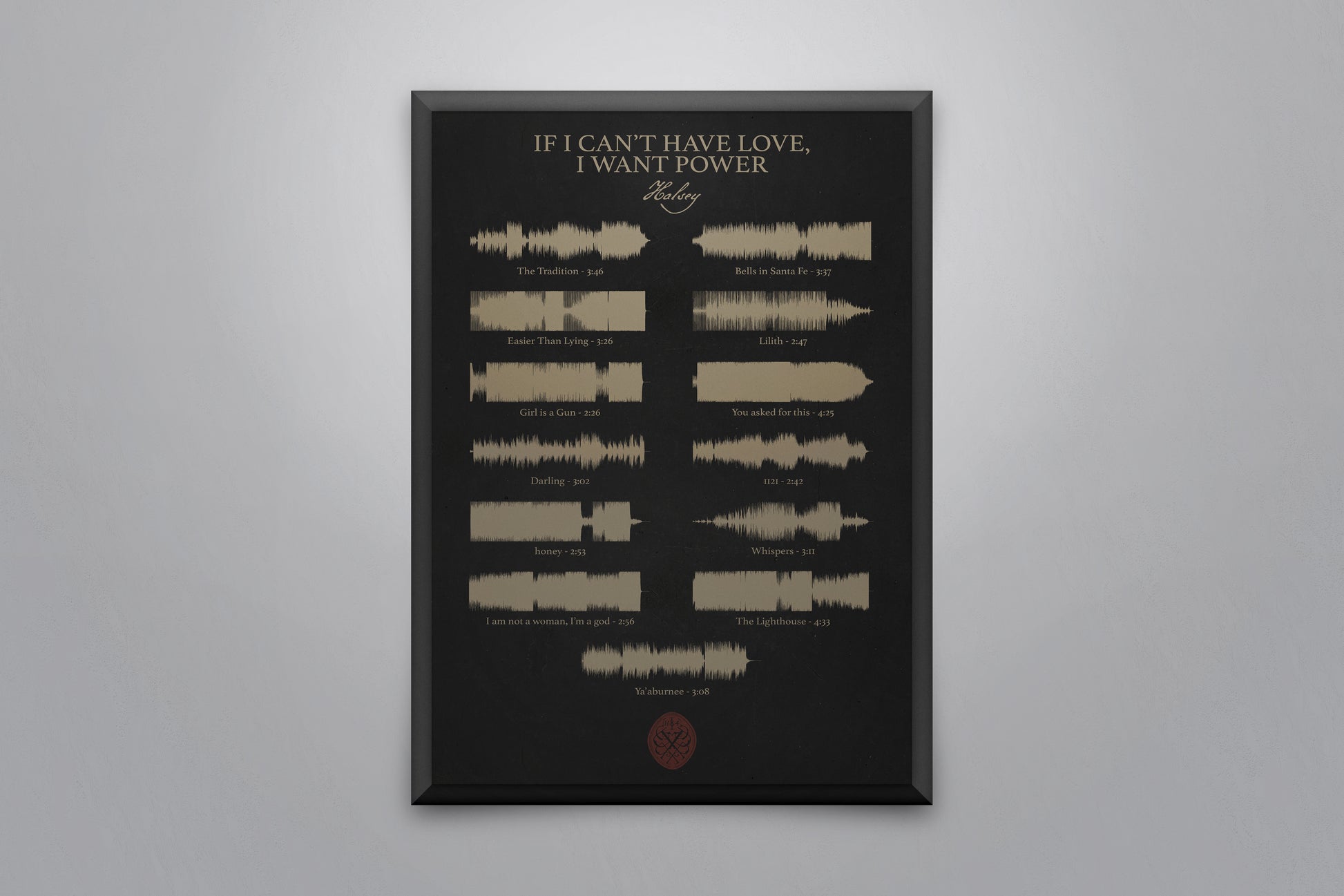 Soundwave poster displaying every song on the album 'If I Can't Have Love, I Want Power' by Halsey.