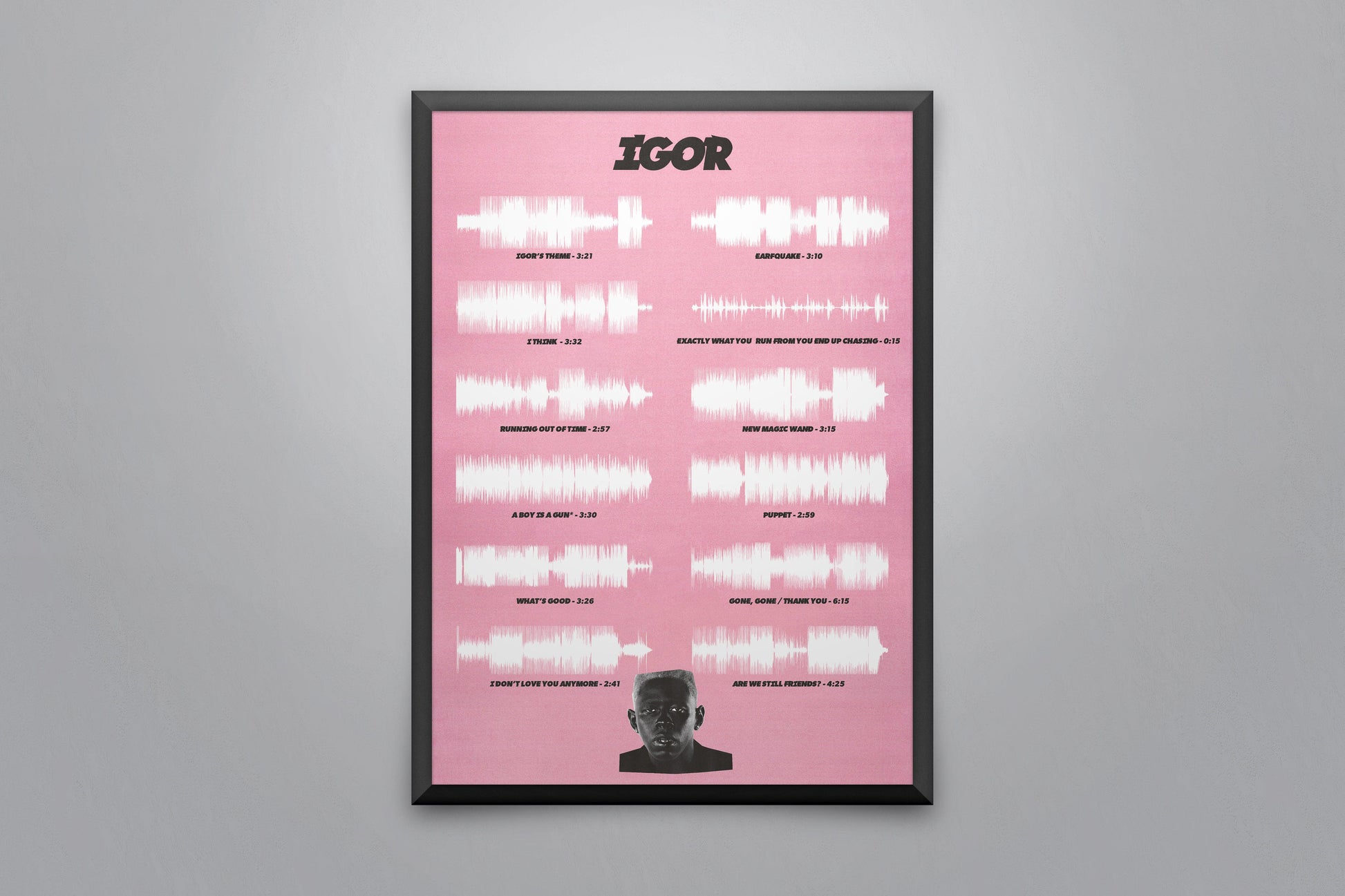 Soundwave poster displaying every song on the album 'IGOR' by Tyler the Creator.