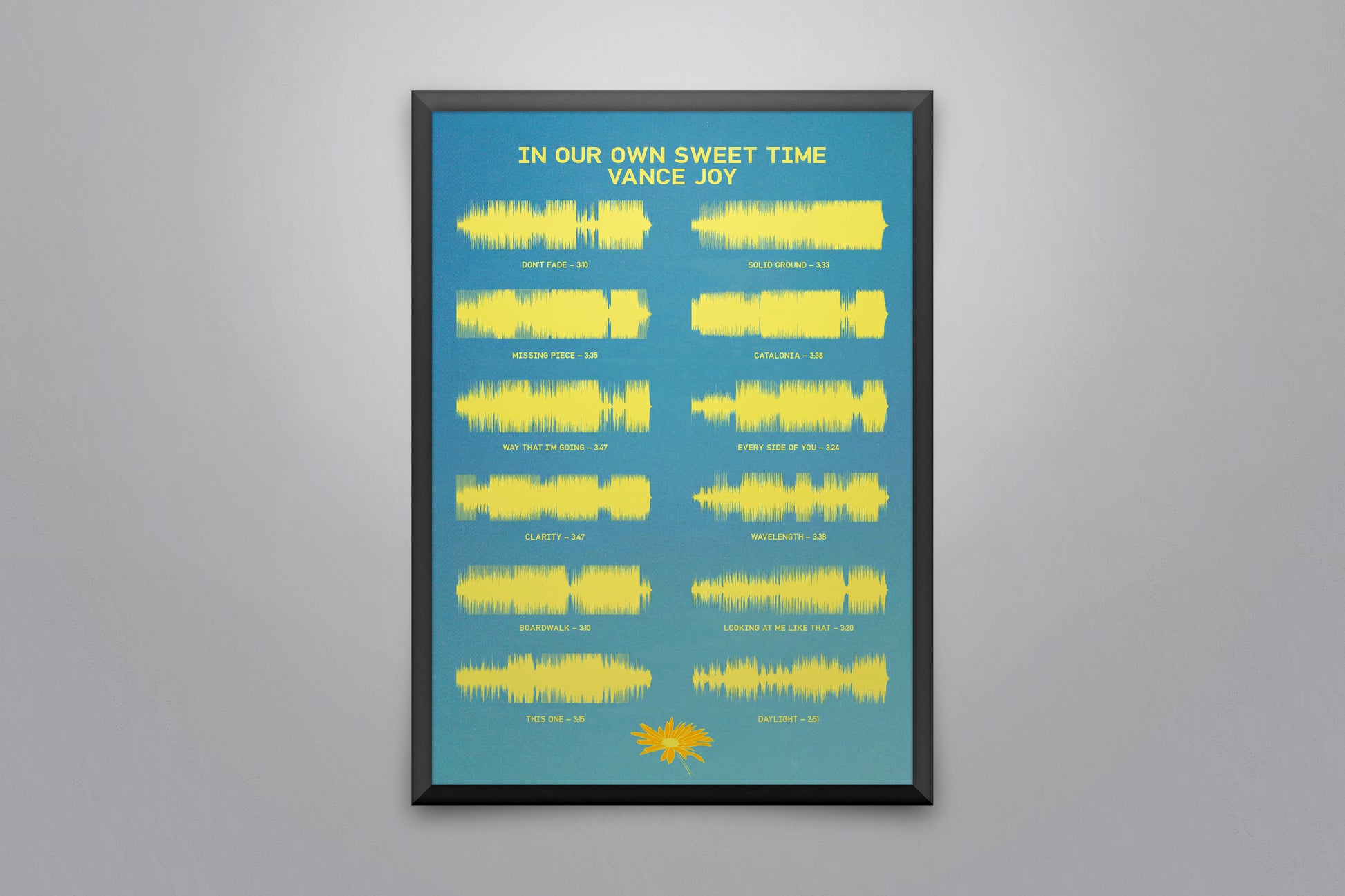 Soundwave poster displaying every song on the album 'In Our Own Sweet Time' by Vance Joy.