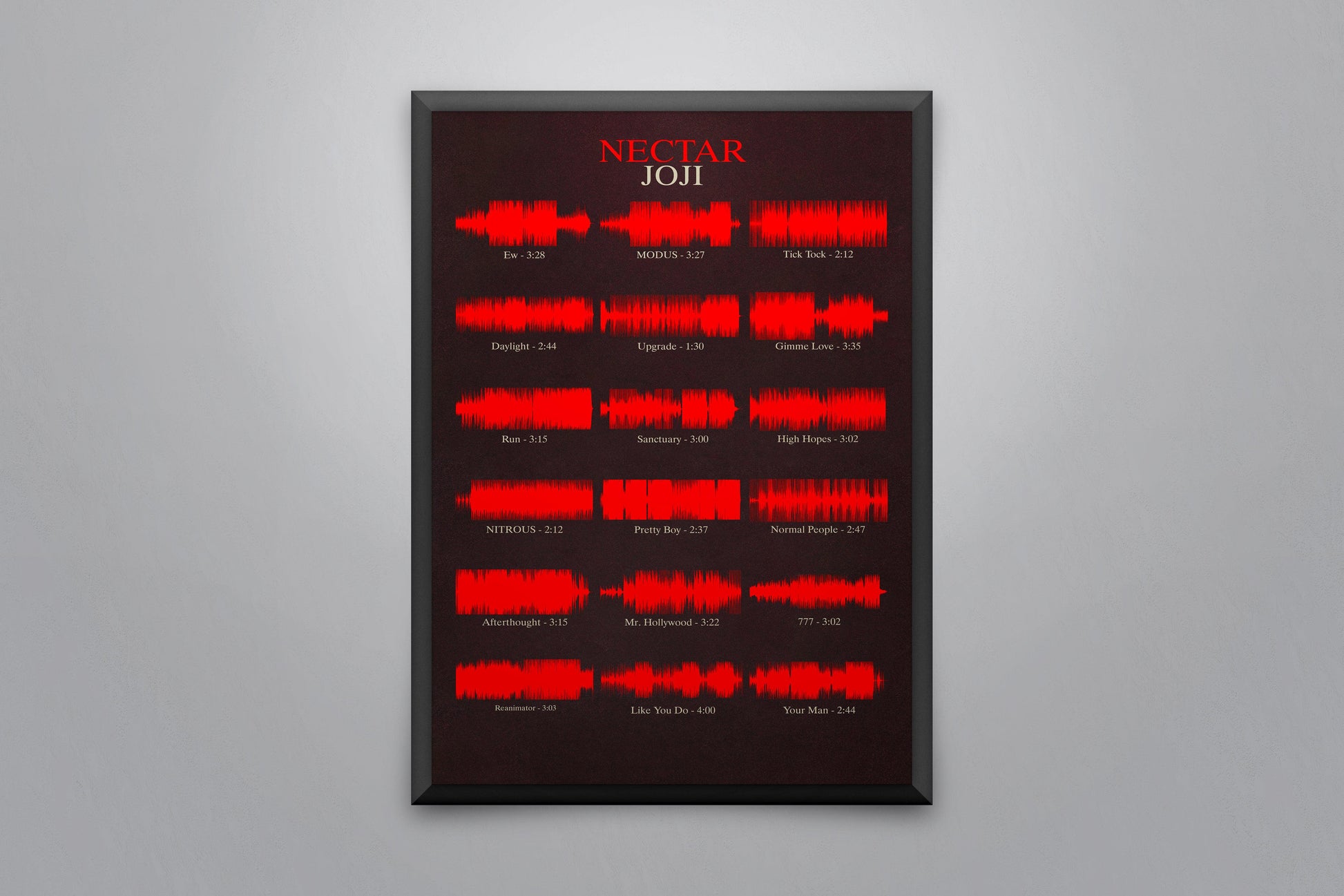 Soundwave poster displaying every song on the album 'Nectar' by Joji.