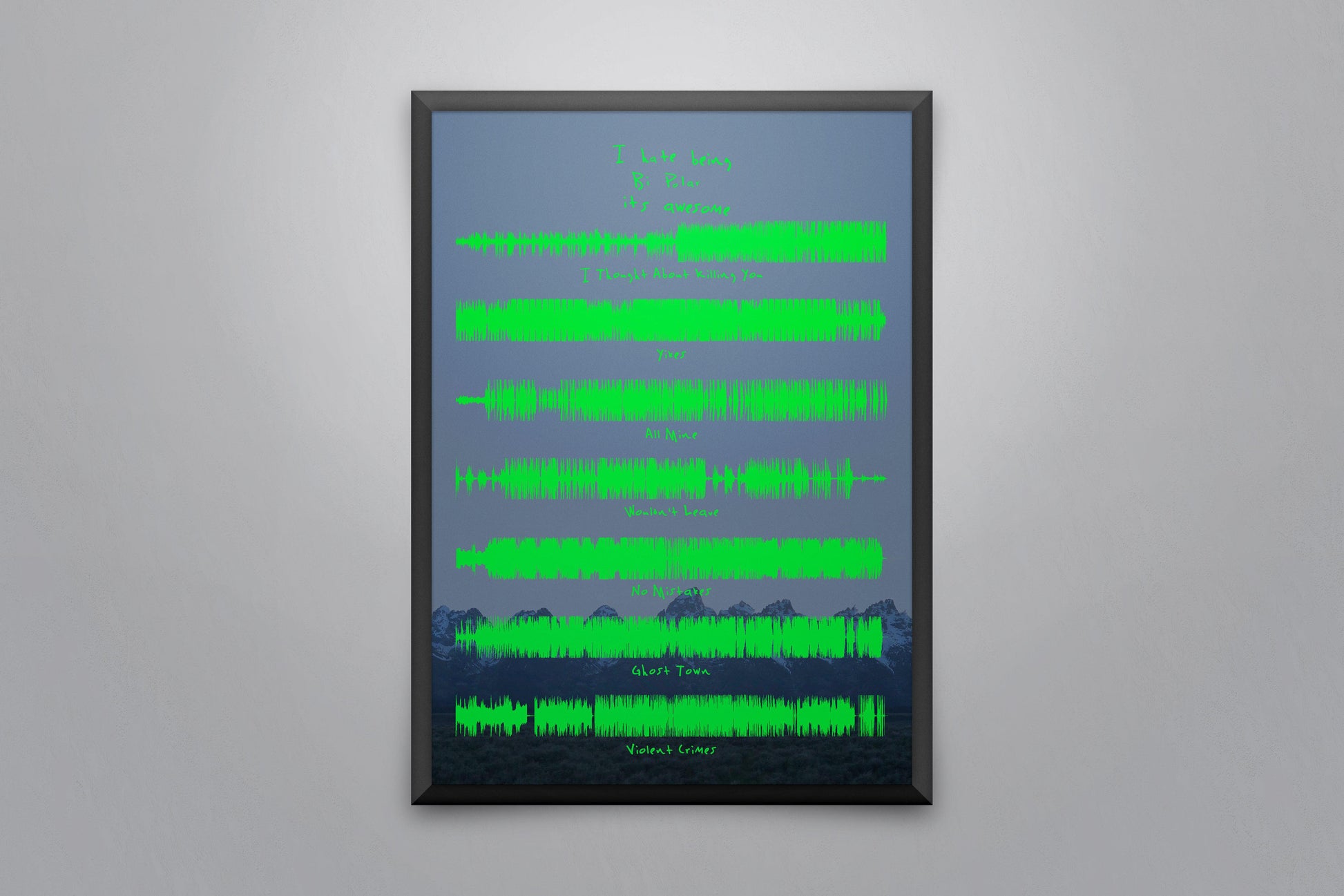 Soundwave poster displaying every song on the album 'ye' by Kanye West.