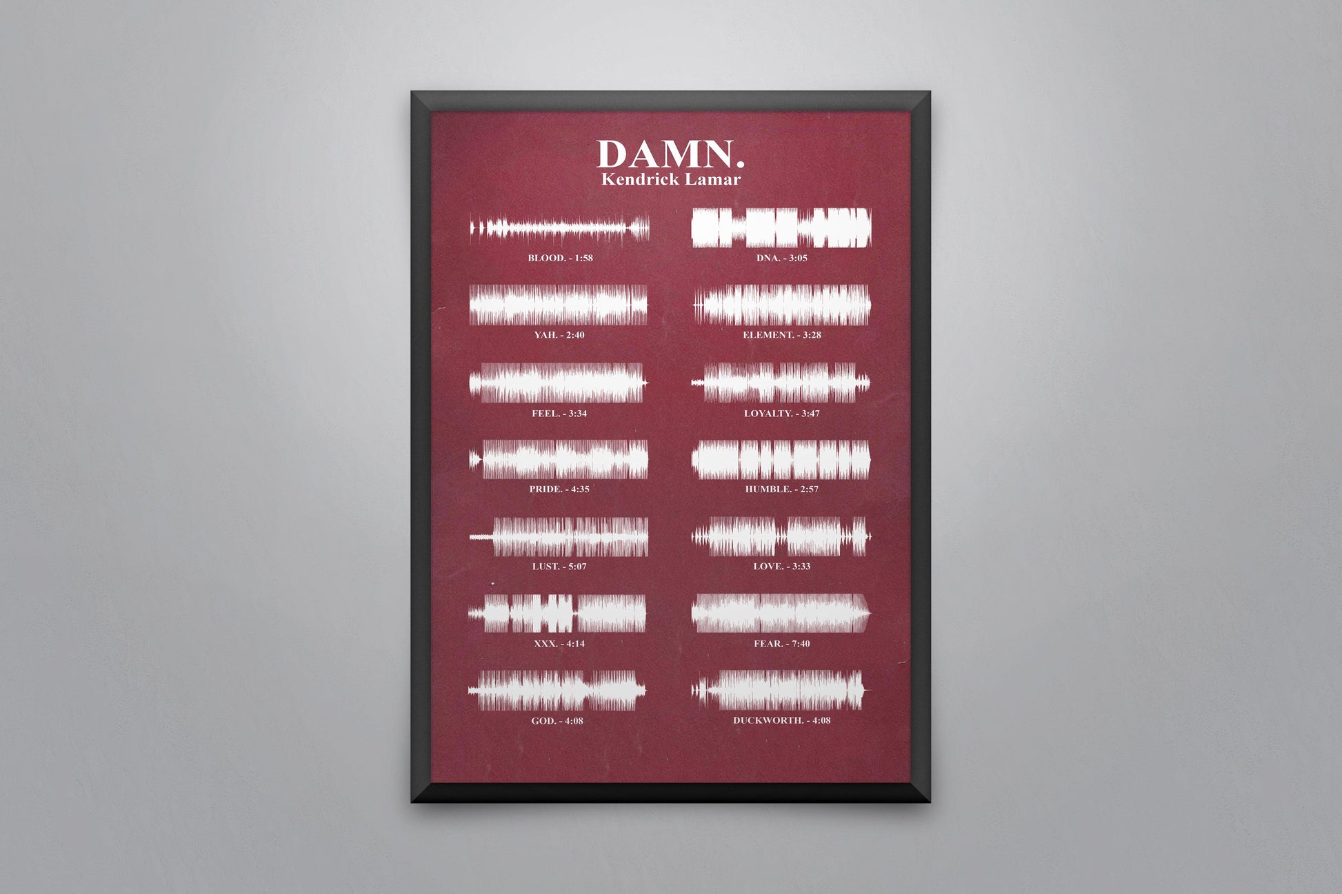Soundwave poster displaying every song on the album 'DAMN.' by Kendrick Lamar.