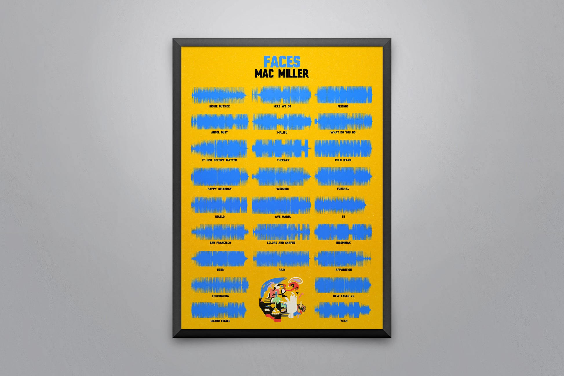 Soundwave poster displaying every song on the album 'Faces' by Mac Miller.