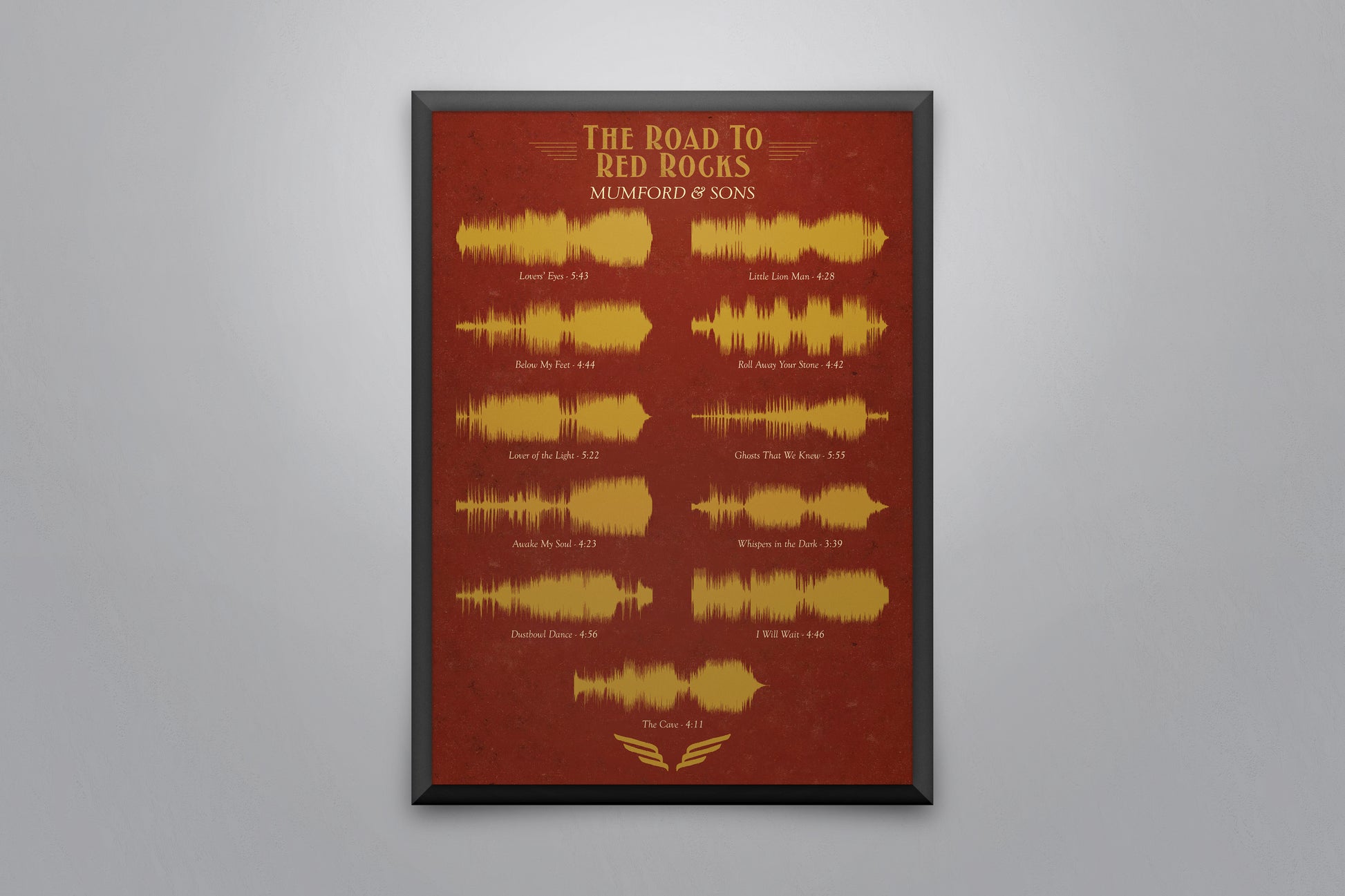 Soundwave poster displaying every song on the album 'The Road To Red Rocks (Live Album)' by Mumford & Sons.
