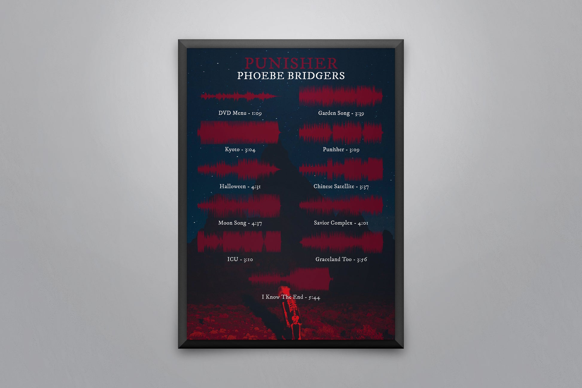 Soundwave poster displaying every song on the album 'Punisher' by Phoebe Bridgers.