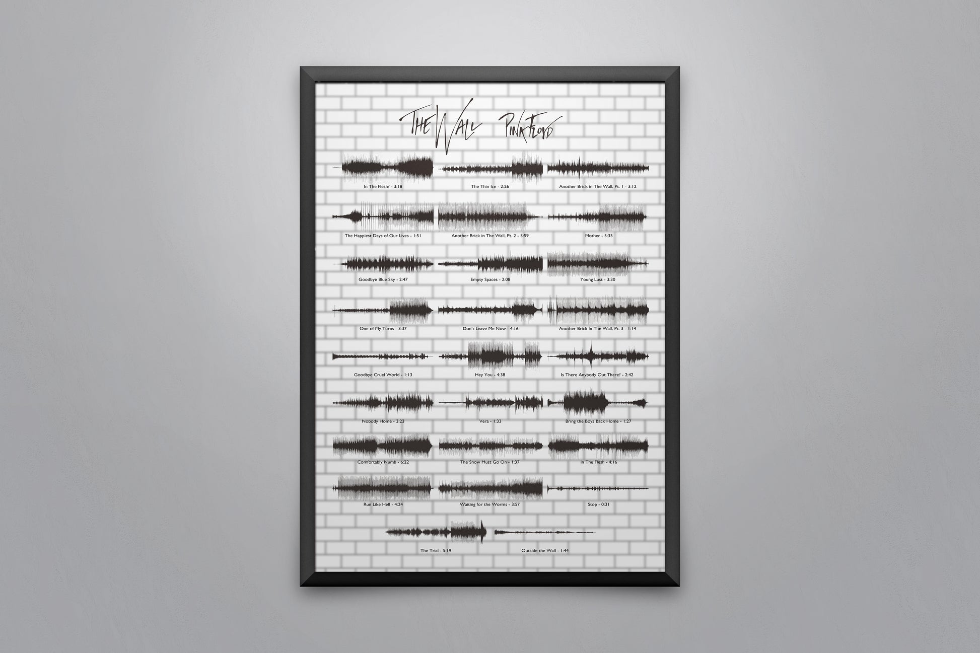 Soundwave poster displaying every song on the album 'The Wall' by Pink Floyd.