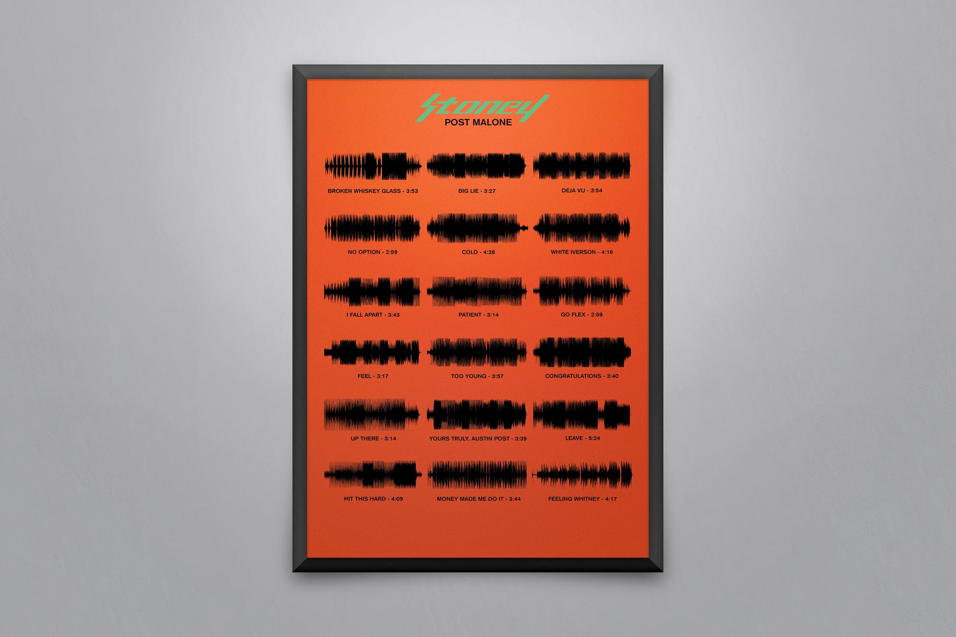 Soundwave poster displaying every song on the album 'Stoney' by Post Malone.
