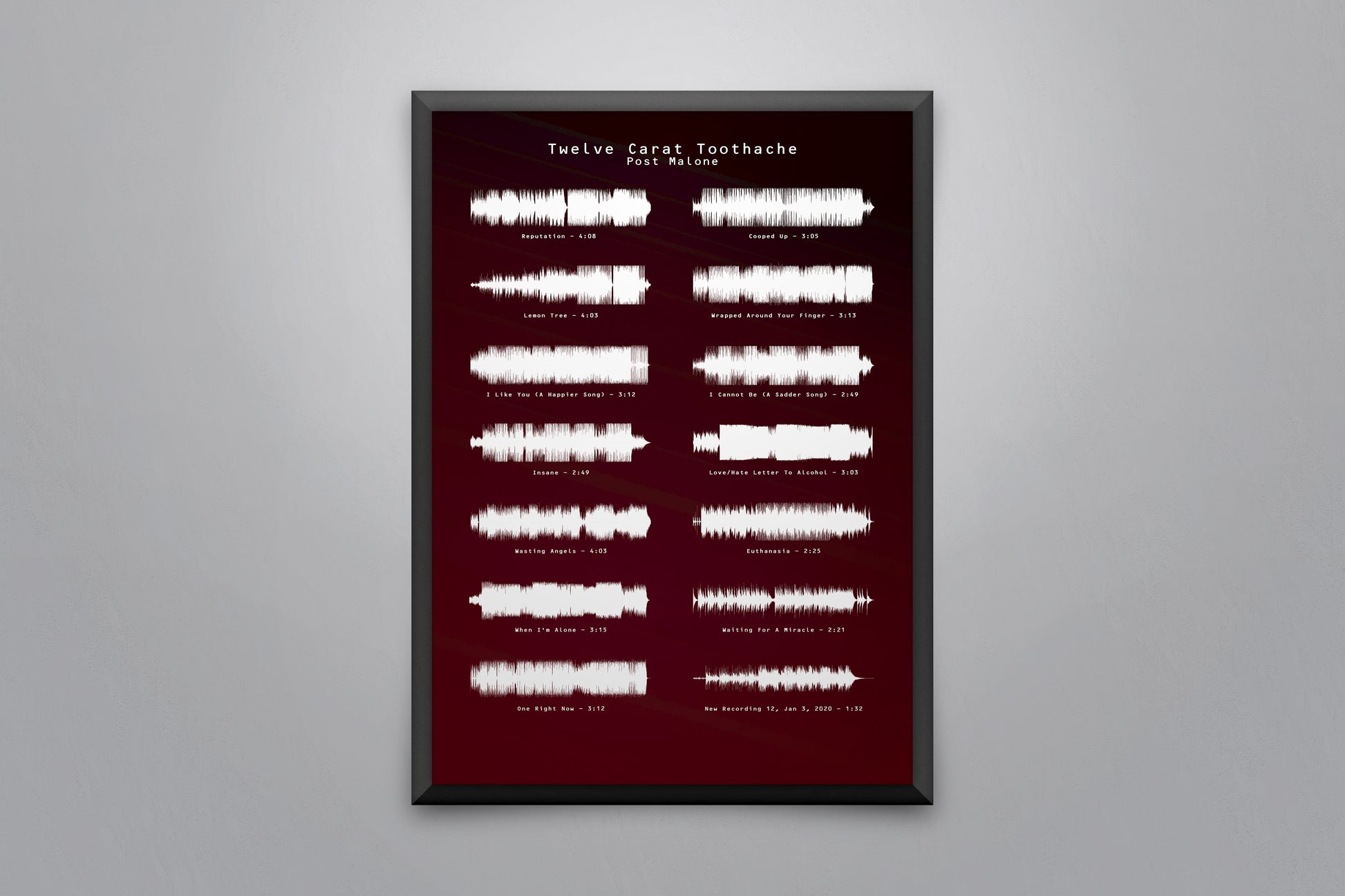 Soundwave poster displaying every song on the album 'Twelve Carat Toothache' by Post Malone.