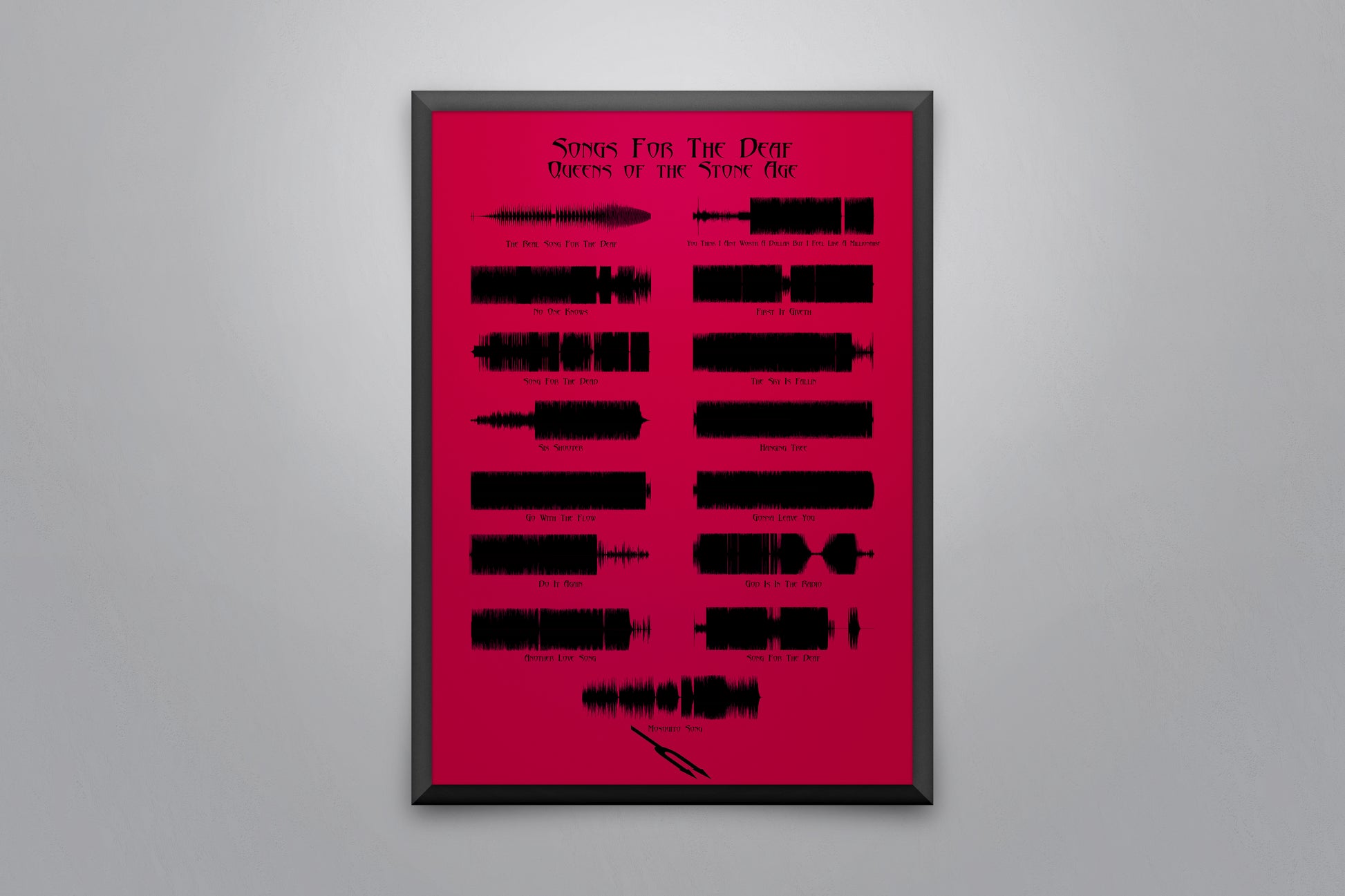 Soundwave poster displaying every song on the album 'Songs For The Deaf' by Queens of the Stone Age.