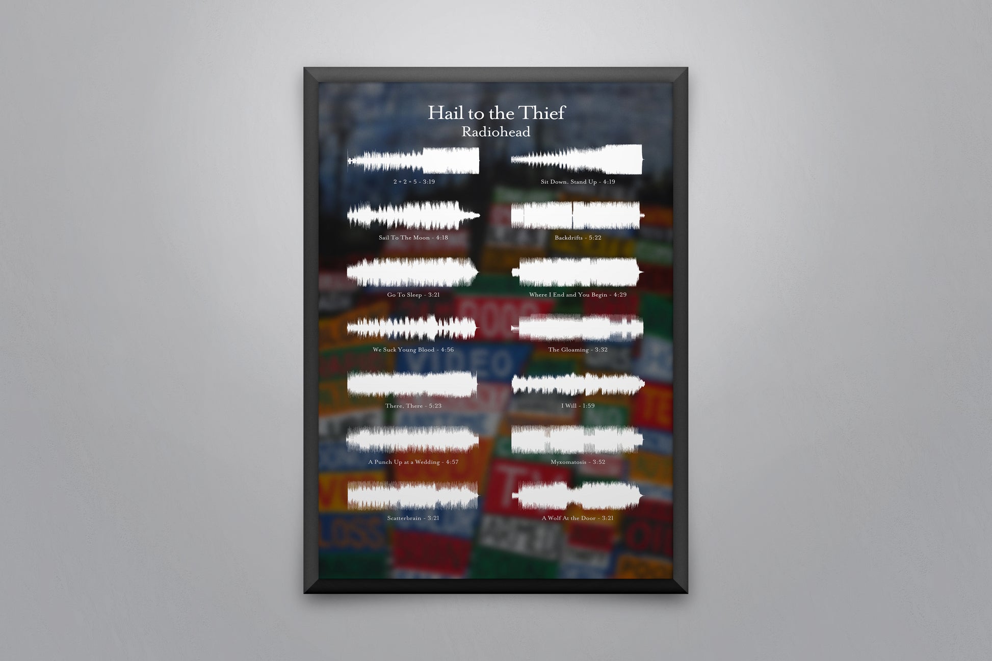Soundwave poster displaying every song on the album 'Hail to the Thief' by Radiohead.