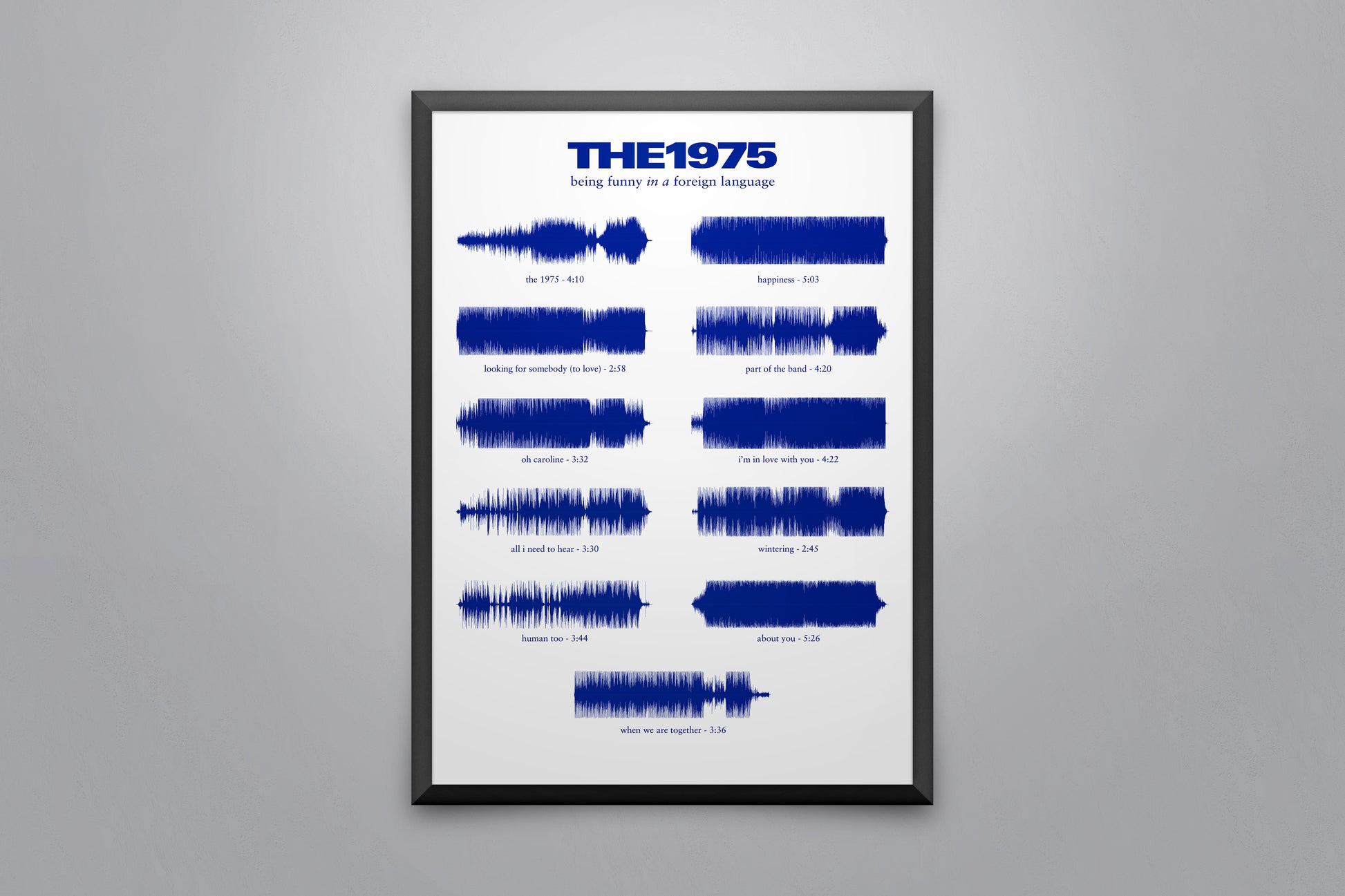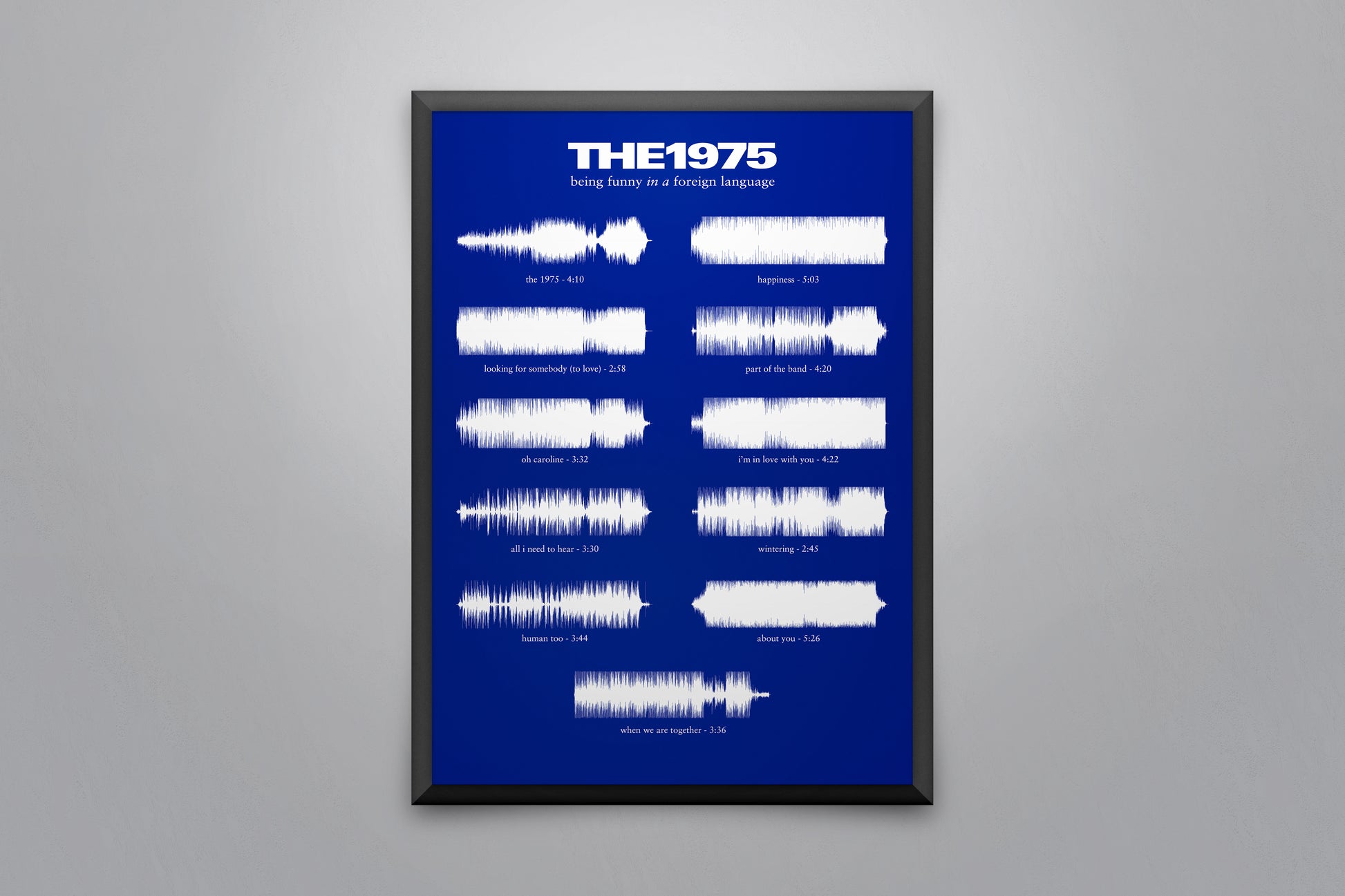 Soundwave poster displaying every song on the album 'Being Funny In A Foreign Language' by The 1975.