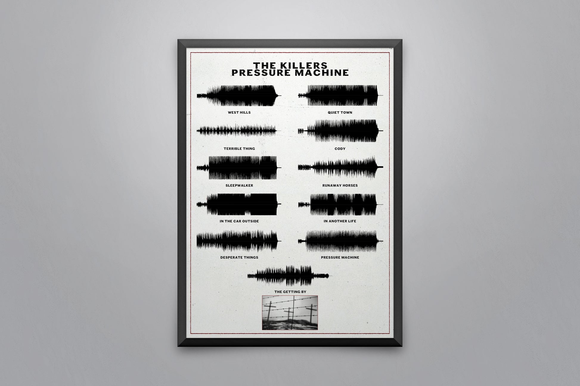 Soundwave poster displaying every song on the album 'Pressure Machine' by The Killers.