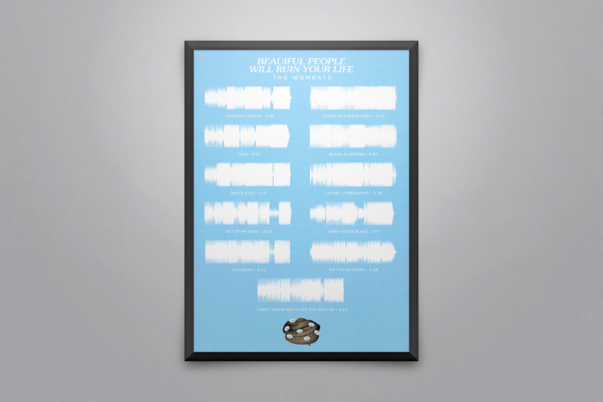 Soundwave poster displaying every song on the album 'Beautiful People Will Ruin Your Life' by The Wombats.