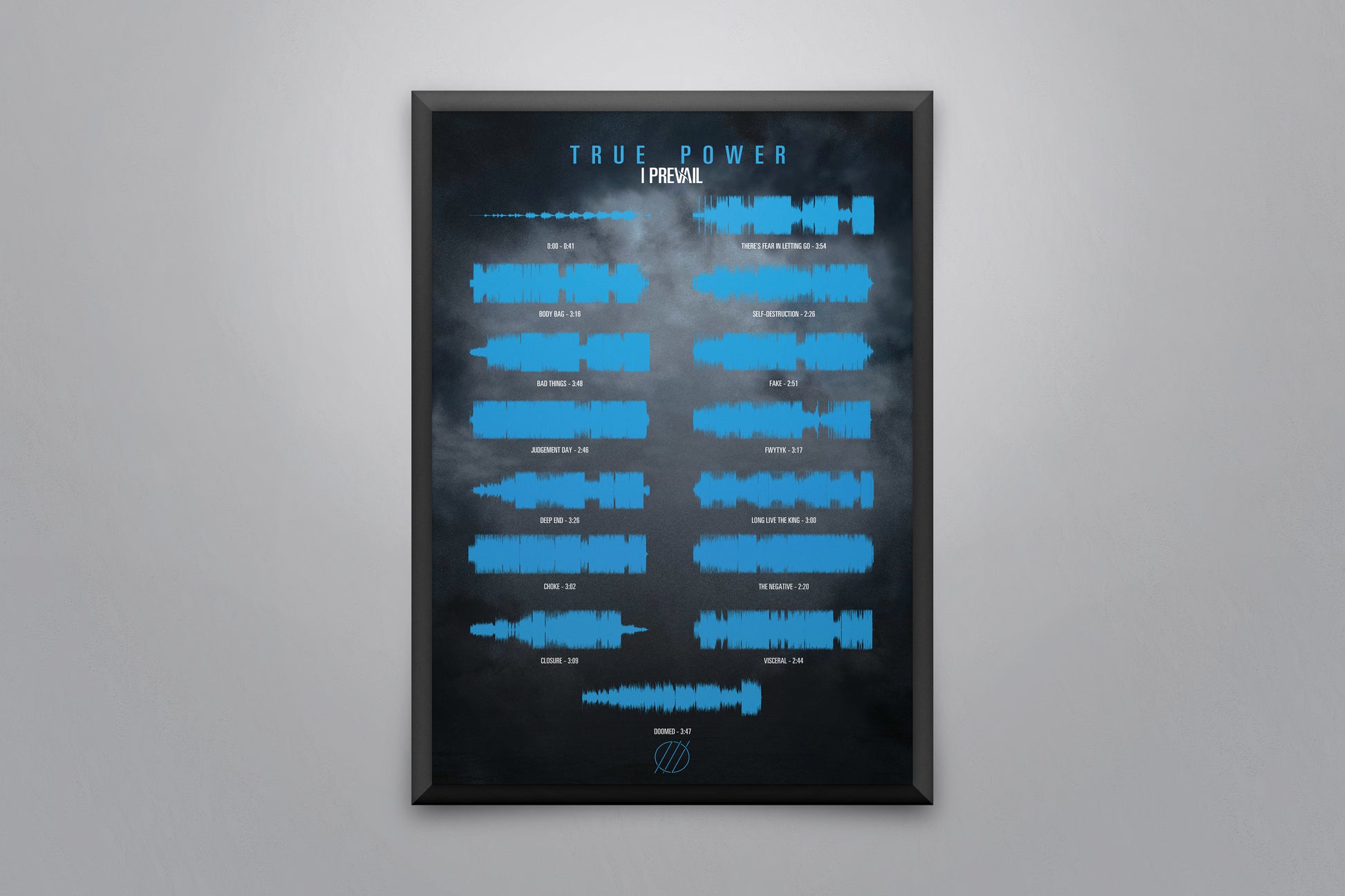 Soundwave poster displaying every song on the album 'TRUE POWER' by I Prevail.