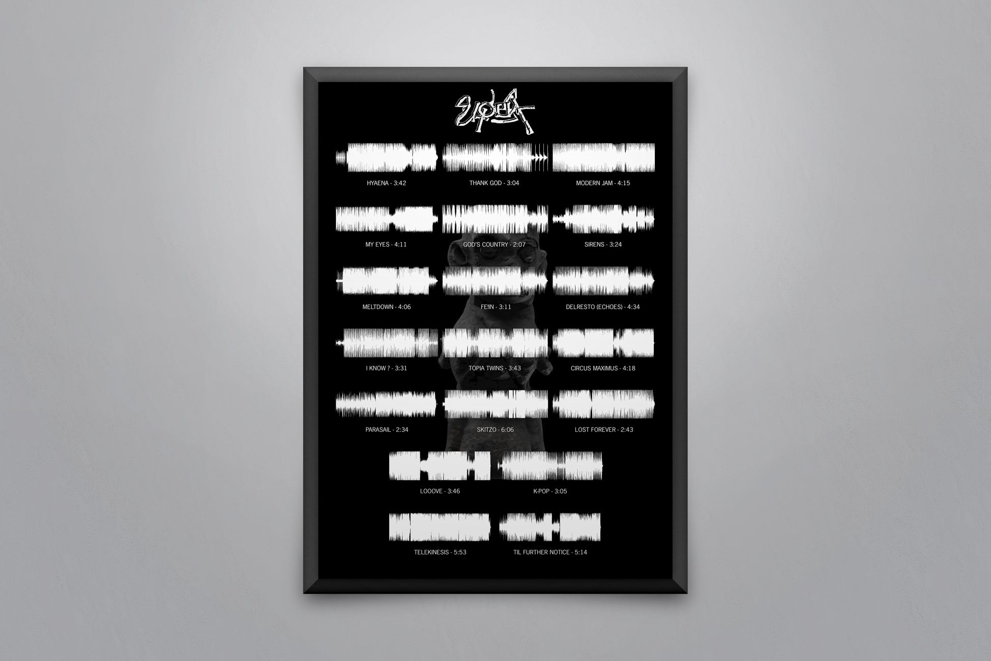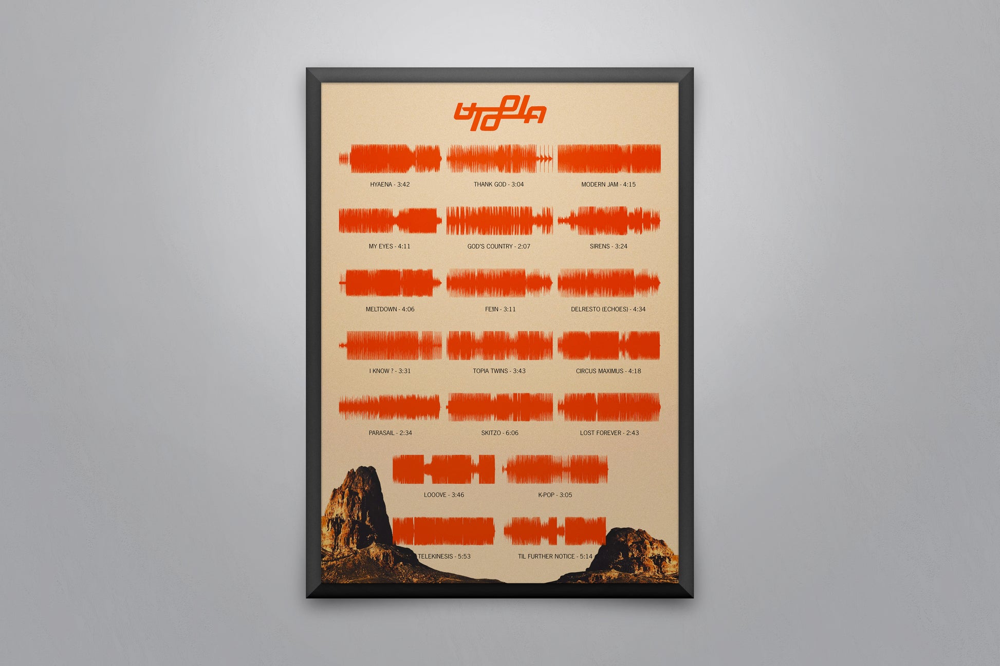 Soundwave poster displaying every song on the album 'Utopia' by Travis Scott.