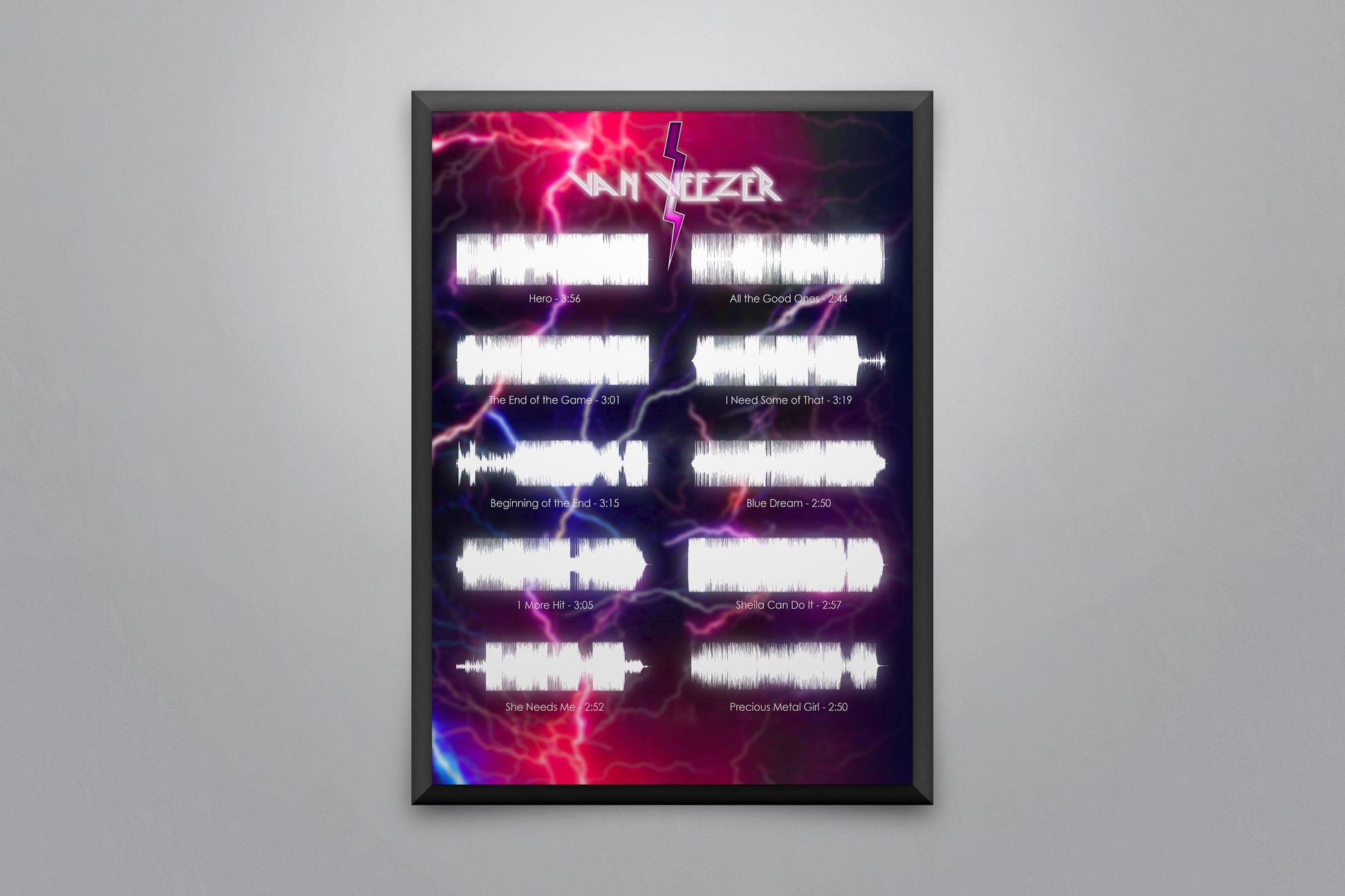 Soundwave poster displaying every song on the album 'Van Weezer' by Weezer.